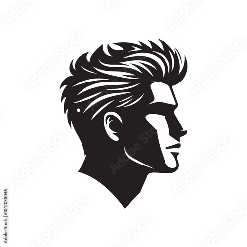 Black Color Man Hairstyle silhouette design Vector Illustration, Solid White Background 34.eps