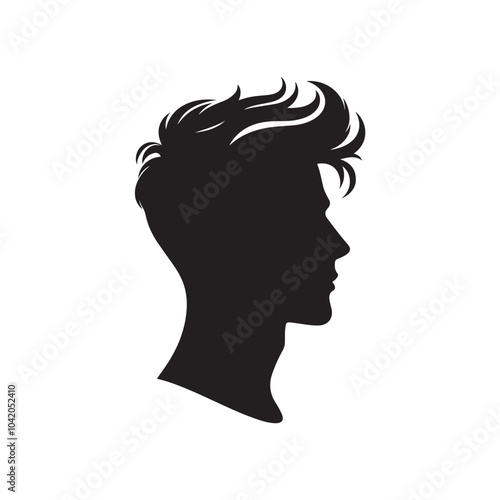 Black Color Man Hairstyle silhouette design Vector Illustration, Solid White Background 60.eps