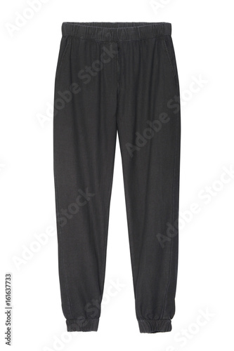 Black cotton linen textile pants isolated on white