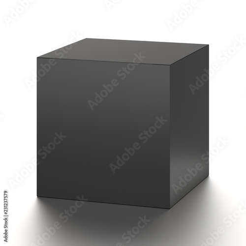 Black cube blank box from front top far angle. 3D illustration isolated on white background.