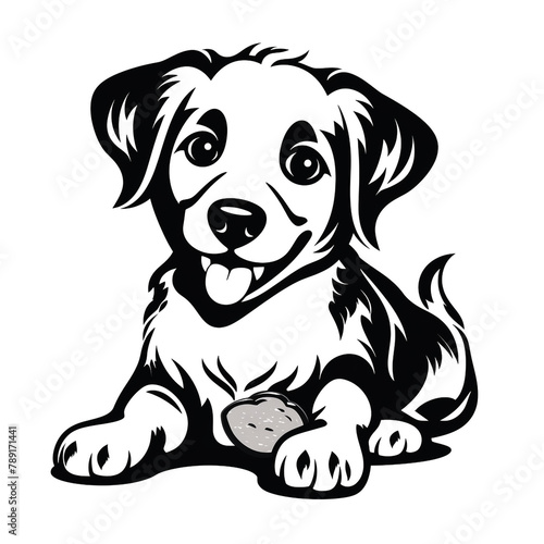 black dog snack outline clipart, simple land at icon, black and white, white background сreated with Generative Ai