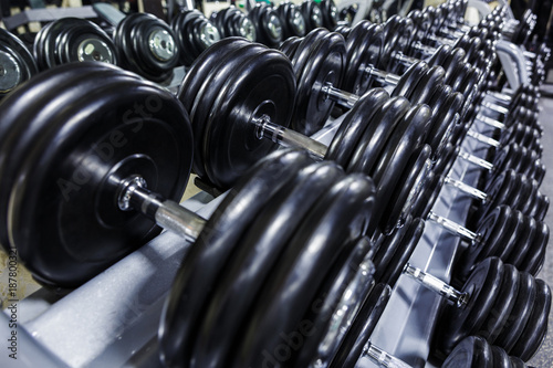 Black dumbbell set.
