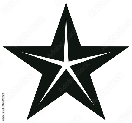 Black Five-Pointed Star with Central White Star Shape for Decoration or Design Element