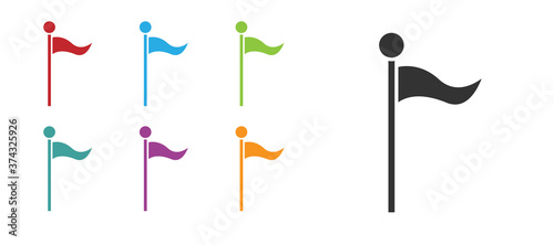 Black Flag icon isolated on white background. Location marker symbol. Set icons colorful. Vector Illustration.