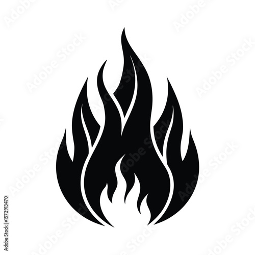 Black Flame Silhouette Icon – Vector Fire Symbol for Logos