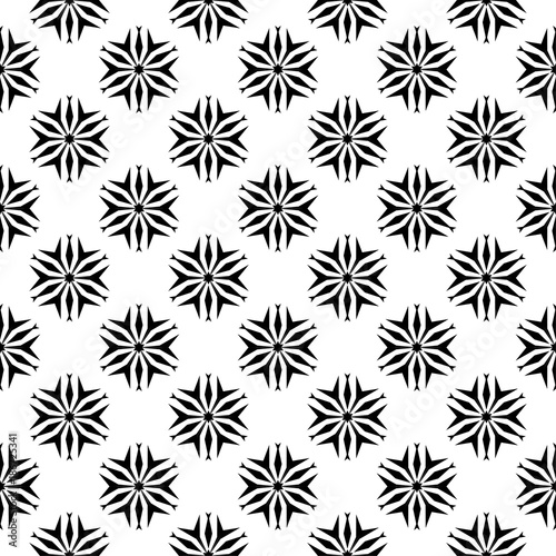 Black floral seamless pattern on white background