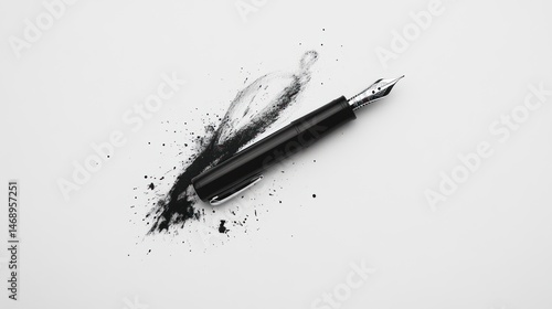 Black fountain pen, ink splatter, white background, writing concept
