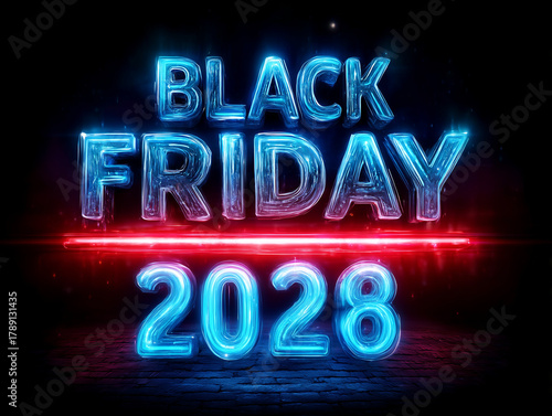 Black friday 2028 neon sign glowing futuristic promotion