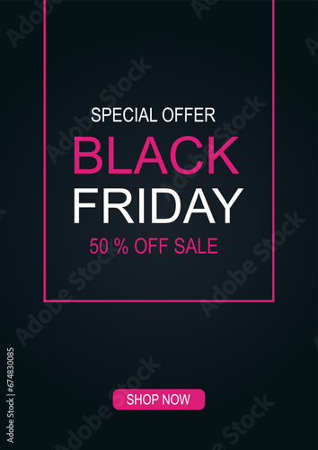Black friday sale banner design template. Pink and white colors on a dark background. Black friday banner. Vector illustration