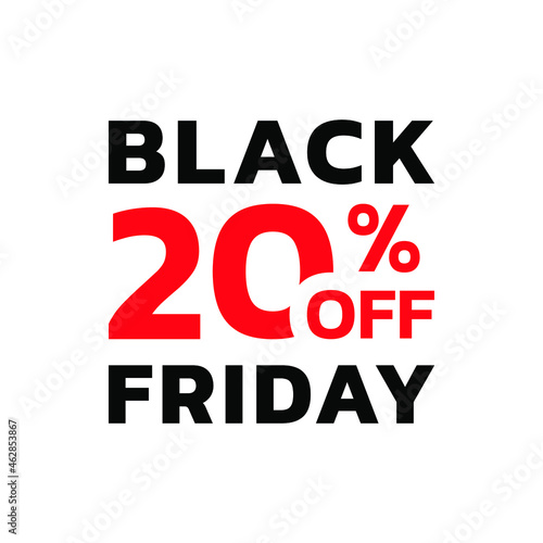 Black Friday sale icon, label or tag with 20 percent price off. Modern discount card or promotion banner design element. Vector illustration.