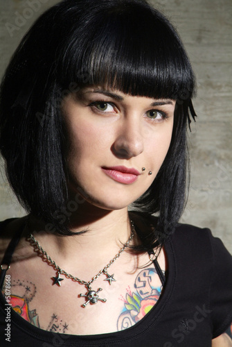 black haired woman with piercing and tattoo