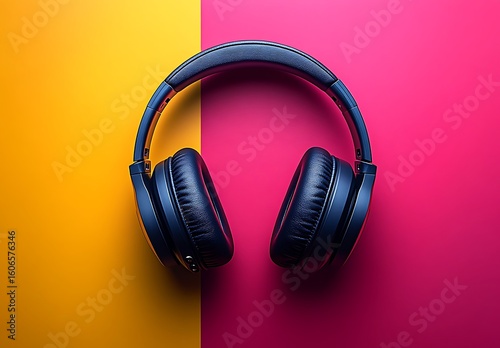 Black Headphones Mockup on Split Yellow and Pink Background
