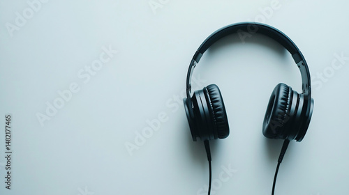 Black Headphones on Light Background for Music Listening