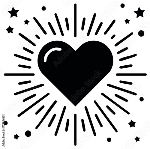 Black Heart with Bursting Lines and Stars Icon