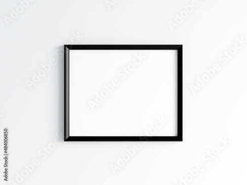 Black horizontal frame on the wall, poster mockup, 3d render