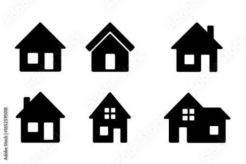 Black House Icons Set, Vector Illustration of Various Home Silhouettes on Transparent Background, Real Estate Symbols, Residential Buildings Collection for Design and Web Use