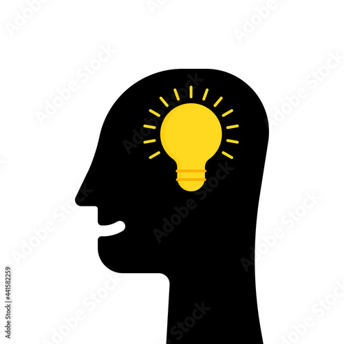black human head and yellow bulb like insight