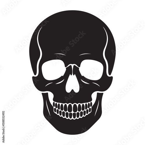 Black Human Skull Silhouette Isolated on White Background – Halloween Horror Symbol Vector Illustration. For design and web