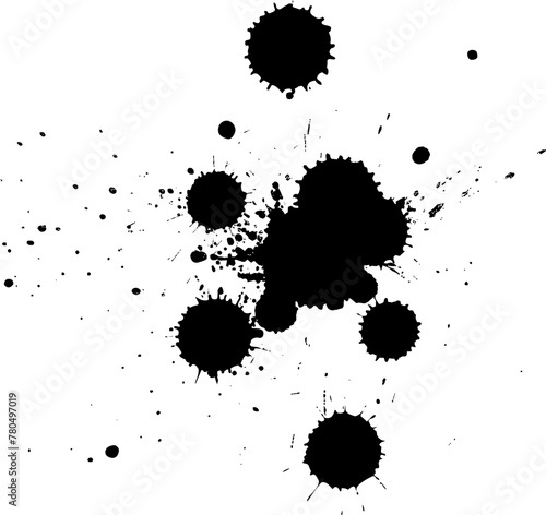 black ink dropped splash splatter on white background