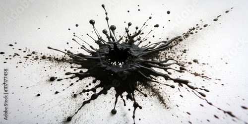 Black Ink Splashes on White Background, Abstract Art, Ink Splatters, black ink, splattered ink