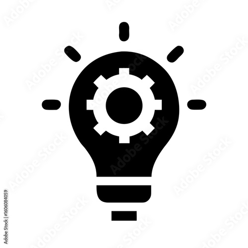Black Innovation Light Bulb Icon – Gear Idea Vector Symbol
