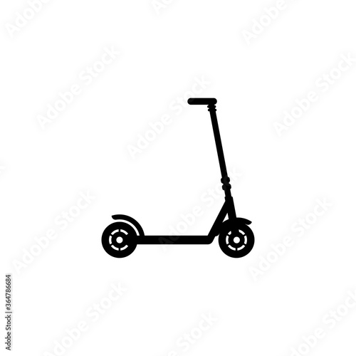 Black kick scooter or balance bike icon. Flat push scooter isolated on white