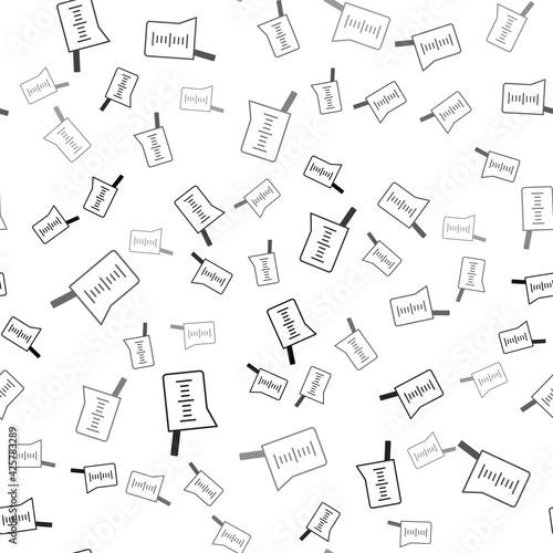 Black Laboratory glassware or beaker icon isolated seamless pattern on white background. Vector