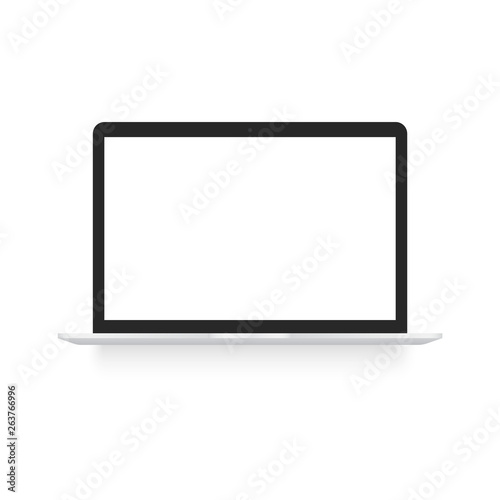 Black laptop mock up with soft shadow. Vector.