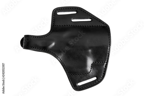 Black leather holster for pistol isolated on white