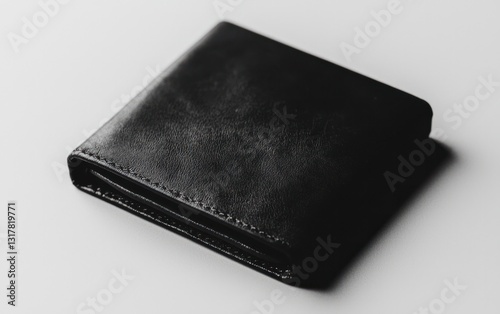 Black Leather Wallet with Water Droplets on Gray Surface