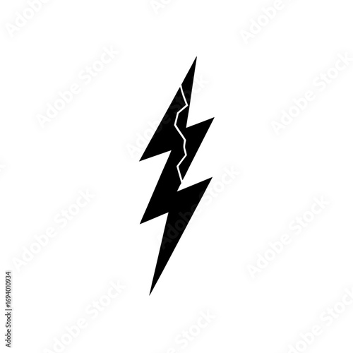 Black lightning bolt with crack on transparent background silhouette