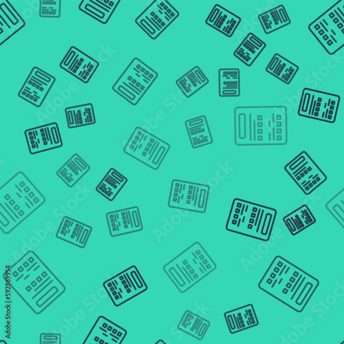 Black line Exam sheet icon isolated seamless pattern on green background. Test paper, exam, or survey concept. School test or exam. Vector