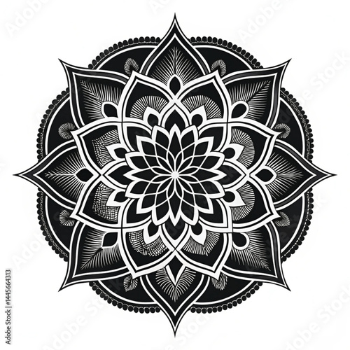 Black Mandala Silhouette Design on White Background – Intricate Geometric Floral Pattern for Tattoo, Decoration, and Spiritual Art