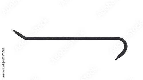 Black metal crowbar, construction tool isolated on white background