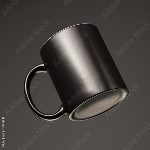 black mug mockup on black background.