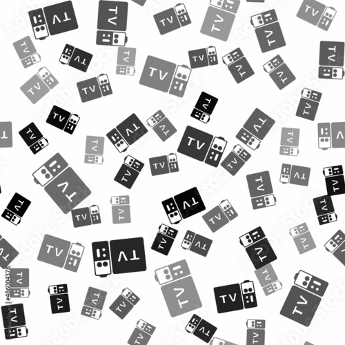 Black Multimedia and TV box receiver and player with remote controller icon isolated seamless pattern on white background. Vector