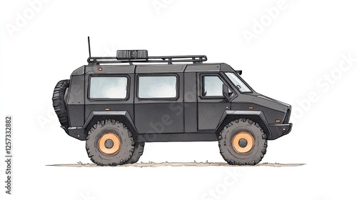 Black off-road vehicle illustration showcasing rugged design and functionality in a minimalistic style