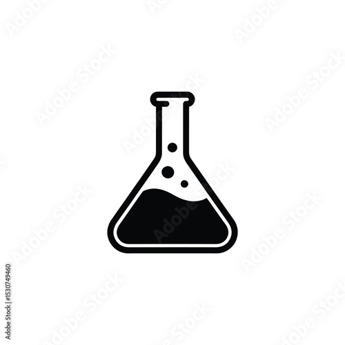 Black Outline Icon of Erlenmeyer Flask with Liquid and Bubbles Inside