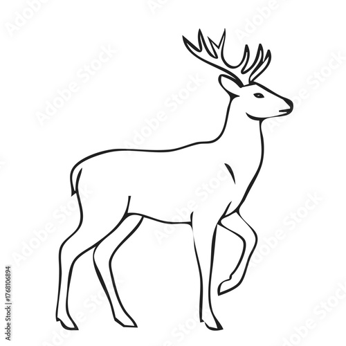 Black Outline Illustration of a Majestic Stag or Deer with Large Antlers, Generative AI