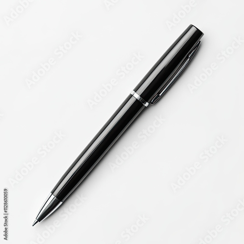 Black pen isolated on white background. Minimalistic close-up of a single pen on plain white background. AI generated image.