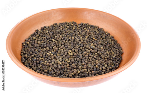 Black pepper in bowl isolated on white background