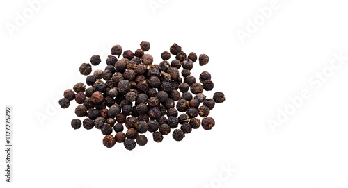 Black peppercorns on white background - Piper nigrum