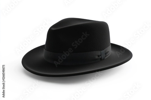 Black plain hat isolated on white background. 3D render, HD Realistic