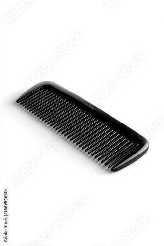 Black plastic hair comb, angled slightly