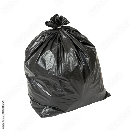 Black plastic trash bag isolated on transparent background