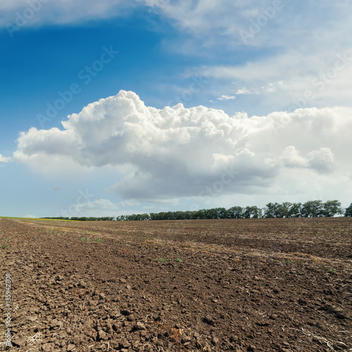 black plowed field and cloudy sky