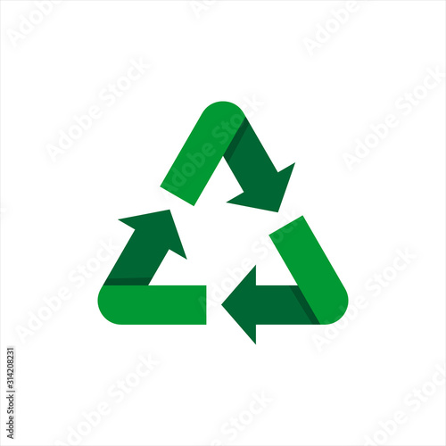Black recycle symbol. Three black arrows circulate. Management of waste materials that are garbage and pass through the transformation process, especially the melting process. Creates new materials.
