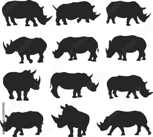 Black Rhinoceros Silhouette Vector Art.