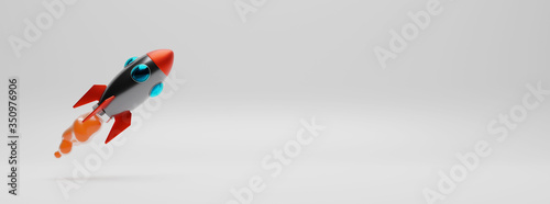 black rocket launching. copy spaces for text. 3D rendering.