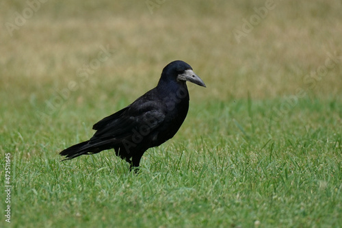 Black rook on the grass Eurasian rook - Corvus frugilegus